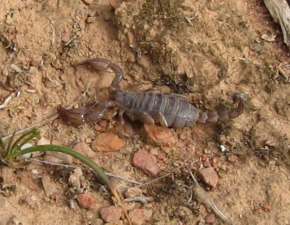 Scorpions are distributed throughout Australia, tending to be larger in the warmer northern areas. On a world scale, Australian scorpions are relatively innocuous, with very few deaths reliably documented as related to scorpion stings. Local pain and swelling are the major clinical problems following Australian scorpion stings. First aid consists of the application of iced water and analgesia if required. The scorpions of central and south America and Africa are much more dangerous, with thousands of fatalities and serious illnesses occurring every year in these areas in relation to scorpion envenomation. |  Photo: R. Lowe, AVRU |