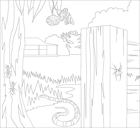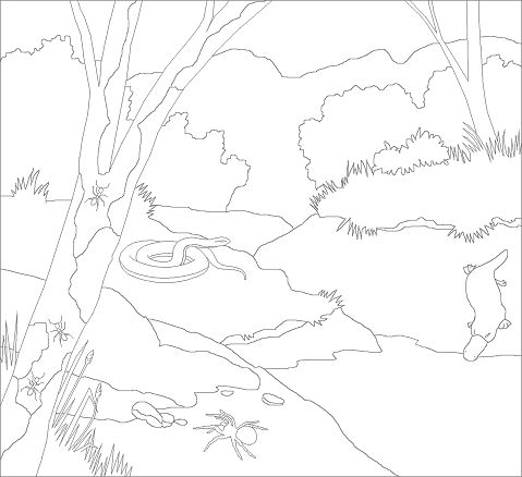 The pictres below show different habitats, and each has venomous four kinds of animals in it. You can print out a full-size version for colouring in just by clicking "print picture" below each. If you want help with colours, you can click on the colour version.